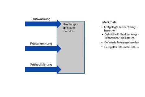 Schritte umfassen Frühwarnung, -erkennung und -aufklärung, erhöhen Handlungsspielraum und gewährleisten einen geregelten Informationsfluss.